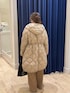 【アウター】 ノーリーズ別注のTAIONフード付きダウン。 とにかく軽い!保温性もしっかりあり、手洗い可能なのでお手入れもしやすさもポイント。 ウエストと裾のドローコードで絞れるデザインなので、お好みでシルエットを変えて着ていただけます。 肩周りがゆったりしているので中にもしっかり着込んでいただけるサイズ感。 お尻も隠れる長さで冬もあたたかく着ていただけます。 ベージュは肌寒い春先にも着やすくおすすめです。カラーニットと合わせてキレイめカジュアルスタイルで着てみました。