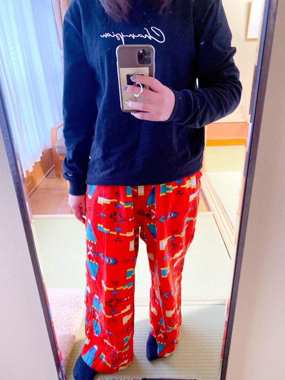 久々にRODEOの柄パンツ☺️ Championの筆記体ロゴ可愛すぎてめちゃくちゃお気に入り✌️ ラフ最高っ