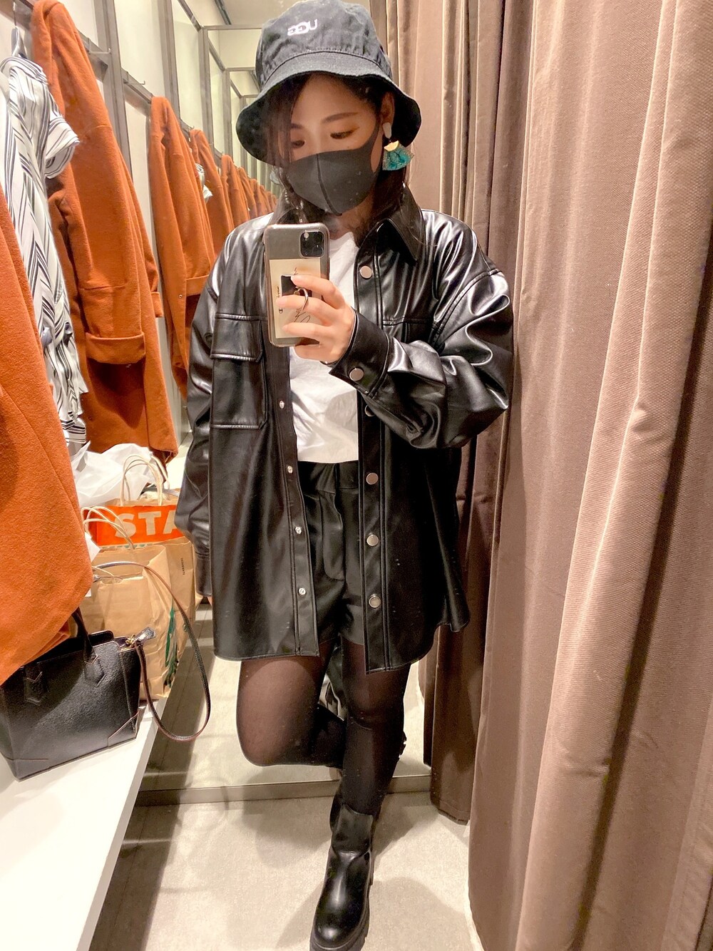 レザーをセットアップ風に 今日暖かかったから これだけでも全然いけた