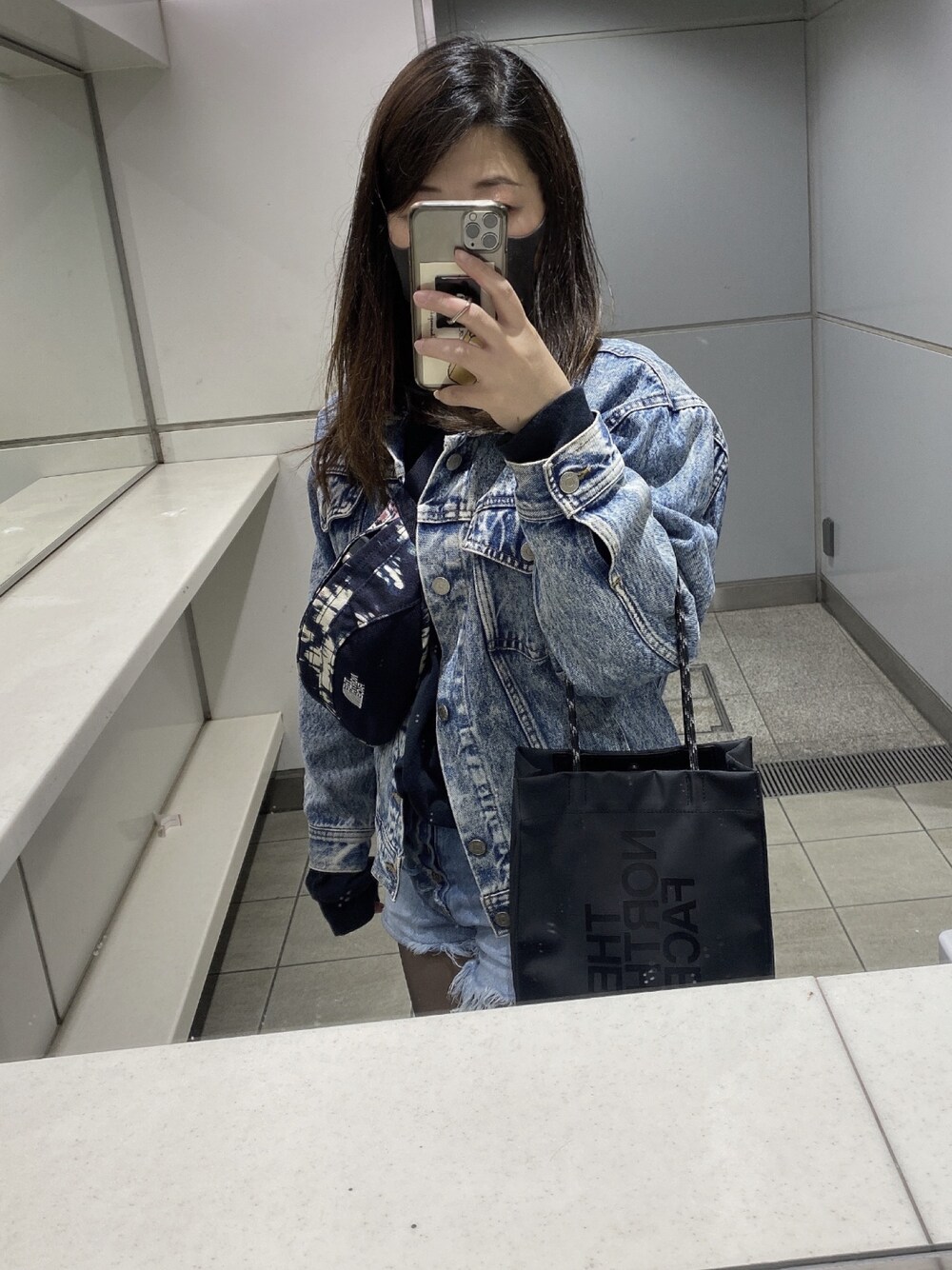 久々デニム 岩盤浴ったから荷物が多い🤷♀️ NORTH FACEのバック どっちも可愛くてお気に入り🥰