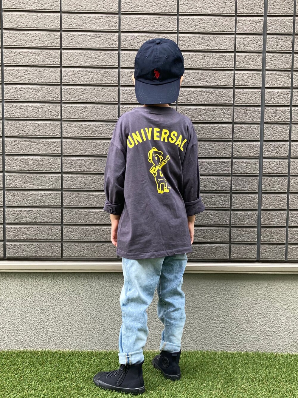 tiinのTシャツ/カットソー「【UNIVERSAL OVERALL】プリントロンT(80~150cm)」を使ったコーディネート