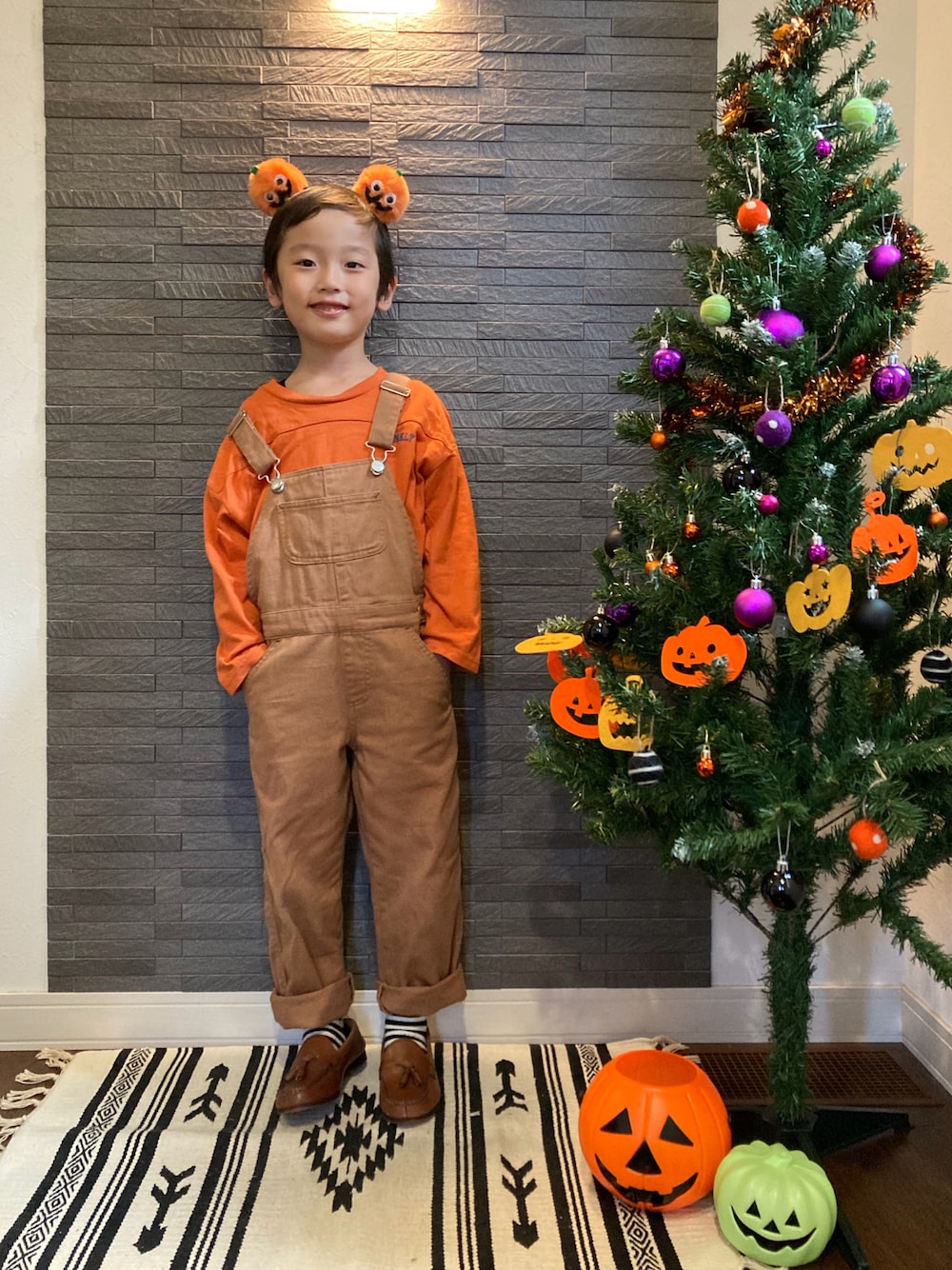 #WEARハロウィン2022 #サロペット ハロウィン始めました🎃 まずは最近大好きオレンジで🍊 オレンジアイテムどんどん増加中です😊 今年のハロウィンツリーは息子が全て飾り付けてくれました🌲 去年まではグチャグチャになるから触らないで〜!ってなってたけど、 今年は任せても上手にできるようになって…成長したなぁ🥹 さてさて、今日は幼稚園最後の運動会です🏃♂️ 一生懸命練習してたので楽しみです😊 ****** 5y7m 115cm 18kg ******
