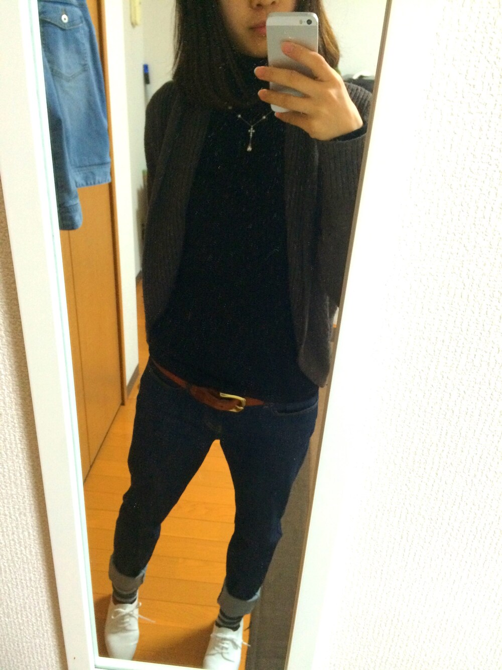 ちょっぴりボーイッシュなラフコーデ。 H&Mのカーディガンを脱いで、ストールを羽織れば女の子らしくもなります