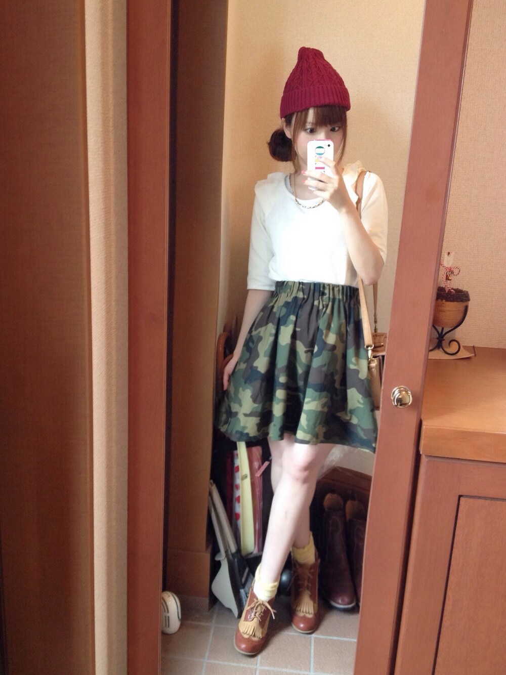 今回は明日のタグのウエストインを使ったカジュアルコーデです( ´ ▽ ` )ノカモフラのフレアのタイプをはいてるフォロワーさん達が可愛かったので買ってしまいました☺︎♫トップスは肩にフリルがついてます☆ニット帽と靴で少し秋らしくしてみました(o’∀’o) 髪型は今回は手抜きで、横にまとめただけです(*'ω'*)★前髪は迷っておろしてみました☺︎♫