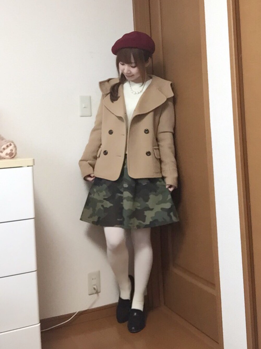 今回はブランドタグのKastaneのスウェットとケントさんベレー帽を使ったコーデです( ´ ▽ ` )ノ 白スウェットにカモフラスカートを合わせて、ポイントにボルドーのベレー帽を被りました☆ カジュアルだけど、白タイツにベレーで少しガーリーにしてます☺︎ ジルのコートは何年か前のなので、アイテム欄のと形は全く一緒なんですが、色が違ってます★ 髪型は片側で三つ編みしてベレー帽被りました∩^ω^∩ 小窓はコートなしで最初はこっちをメインにしようかなぁって思ったんですが、白トップスが壁と同化してたのでコートありの方をメインにしました☆ 私すごくお買い物が好きで洋服買っちゃうんですが、みなさんは月にどのくらいお洋服買ってますか⁇(°_°) けっこう昔の着ない洋服とかはヤフオクで売ろうかなって考え中です★