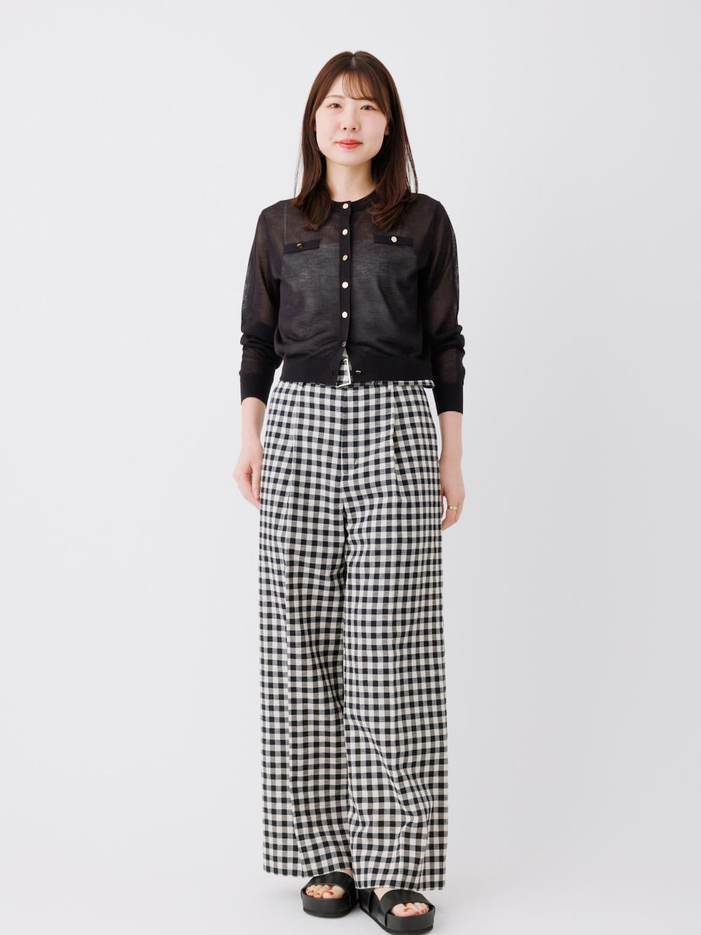 サラッとした着心地のシアーカーディガンに大人可愛いチェック柄を合わせたコーディネートです。 気温が上がってからも快適に使いやすい素材のアイテムは、これからの時期に大活躍間違いなしです☺︎︎ 可愛いイメージのチェック柄もシアーな素材のトップスで程よく肌見せ、更にブラックカラーでまとめているのでガーリーになりすぎないスタイリングとなっています。 ぜひお試しください。