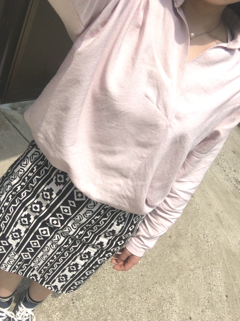 韓国で買ったピンクシャツ! 一枚で丁度いい気温♪ 今回は柄スカートに合わせてみました🔅 靴は愛用コンバース⭐️