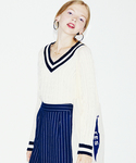 CHliのニット/セーター「ライン衿ケーブルニット」を使ったコーディネート