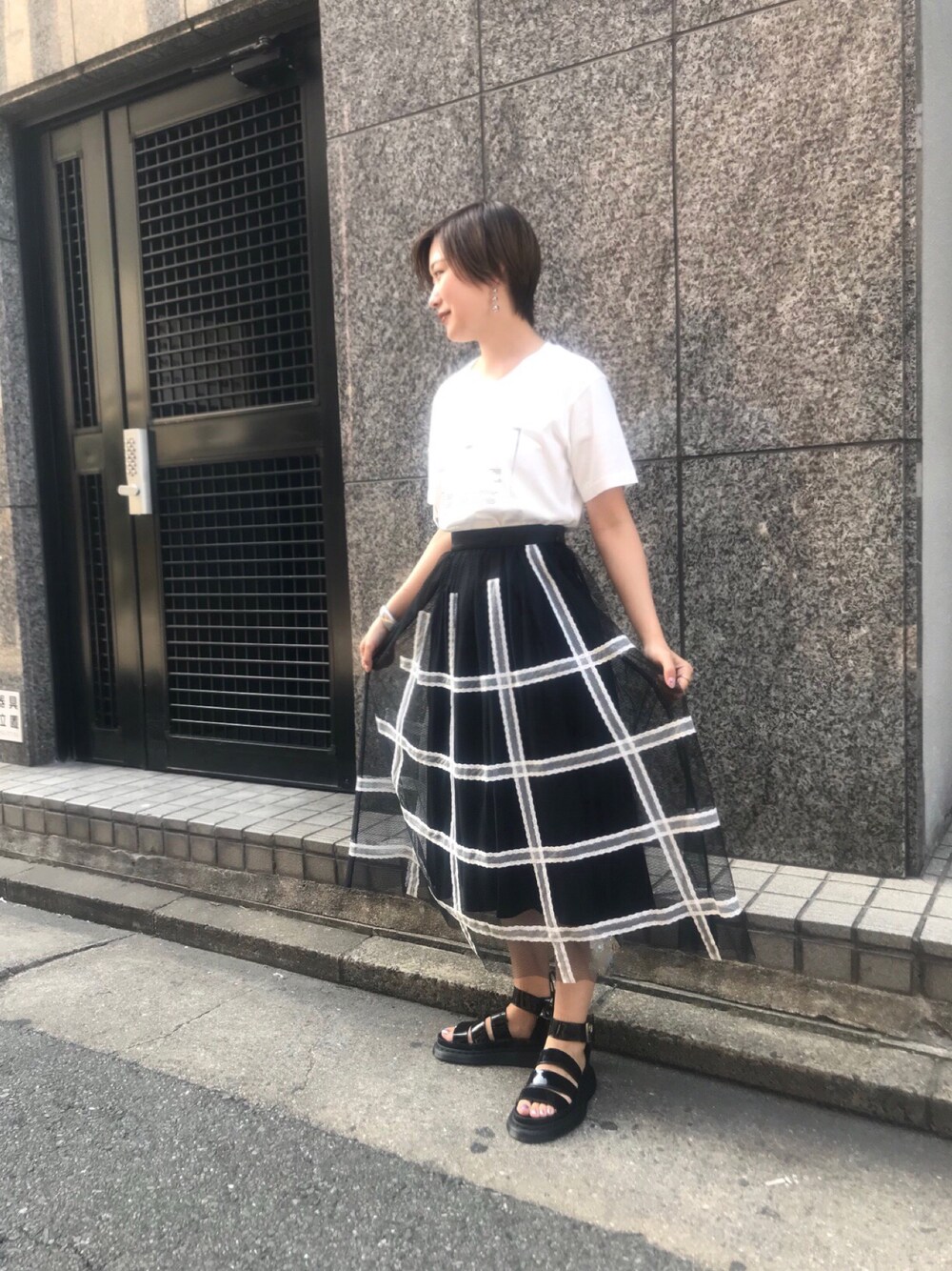 chiaのスカート「【LOVELESS】WOMEN Creative line チュールチェックスカート」を使ったコーディネート