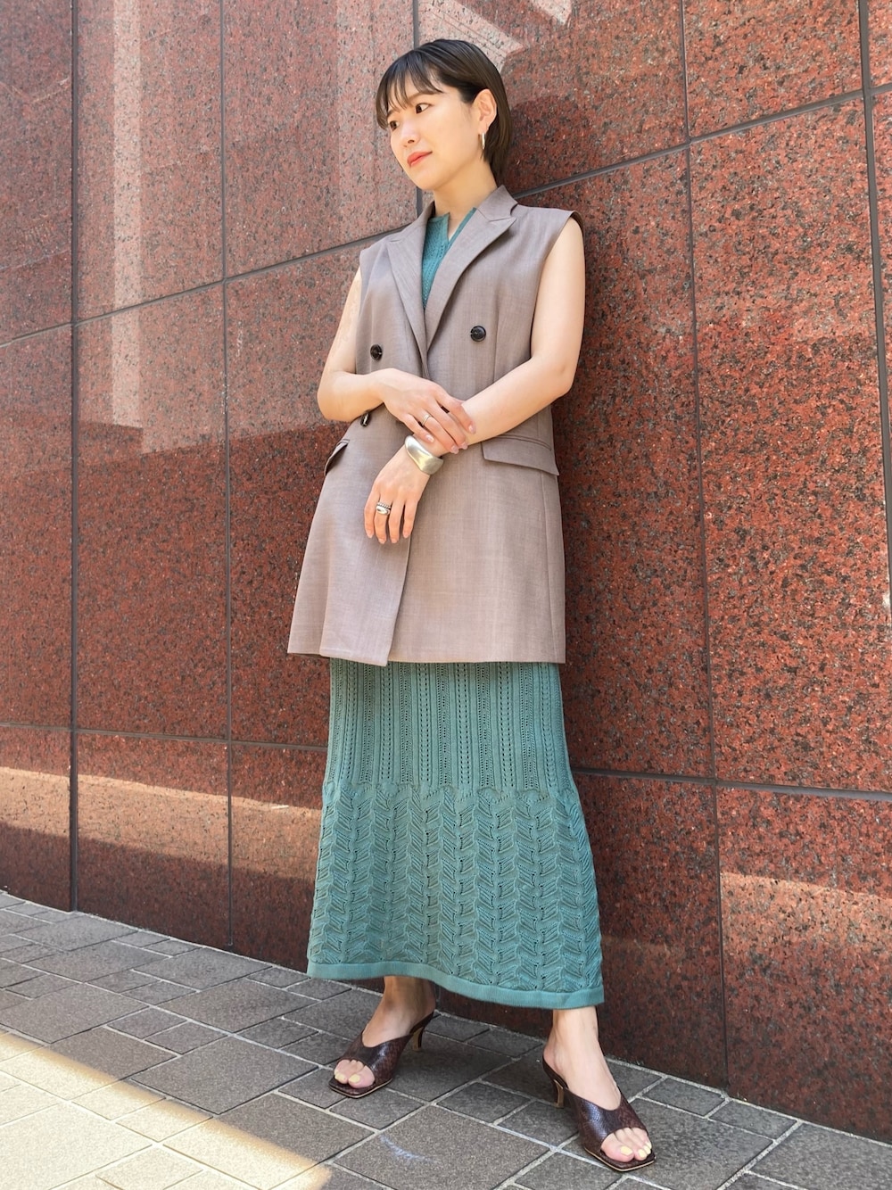 ジレを羽織ればこなれ感を出しつつ体型カバーも出来ておすすめです◎