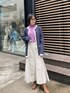 ダークパープルのトップスをインナーに入れて春気分♪