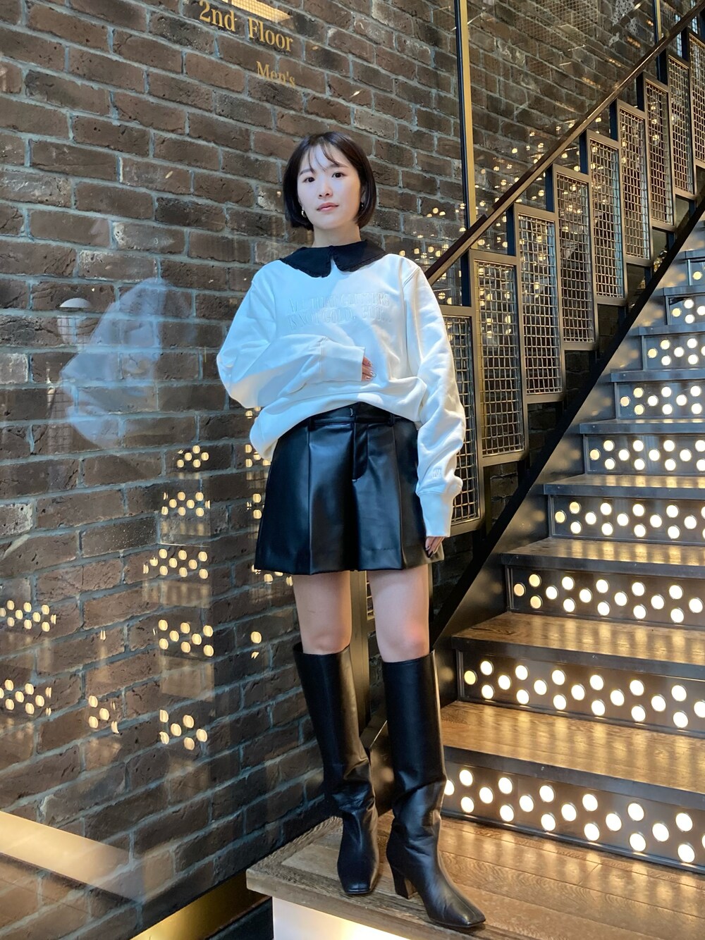 今年らしい大きめの襟が特徴のトップスをインナーに入れて今年らしい装いに。
