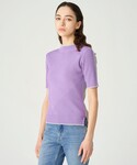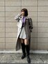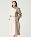 左右異なるカラーで切り替えたインパクトのあるトレンチコートをメインにコーディネートしました。 ニットにパープルを取り入れて春らしさをプラス。 身長の低い方でも様になるトレンチコートです◎