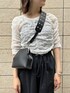 クロップド丈のトップスは低身長さんにはマストです◎ カーゴパンツを合わせてカジュアルな装いに。 程よい透け感なのでヘルシーな肌見せが叶います。