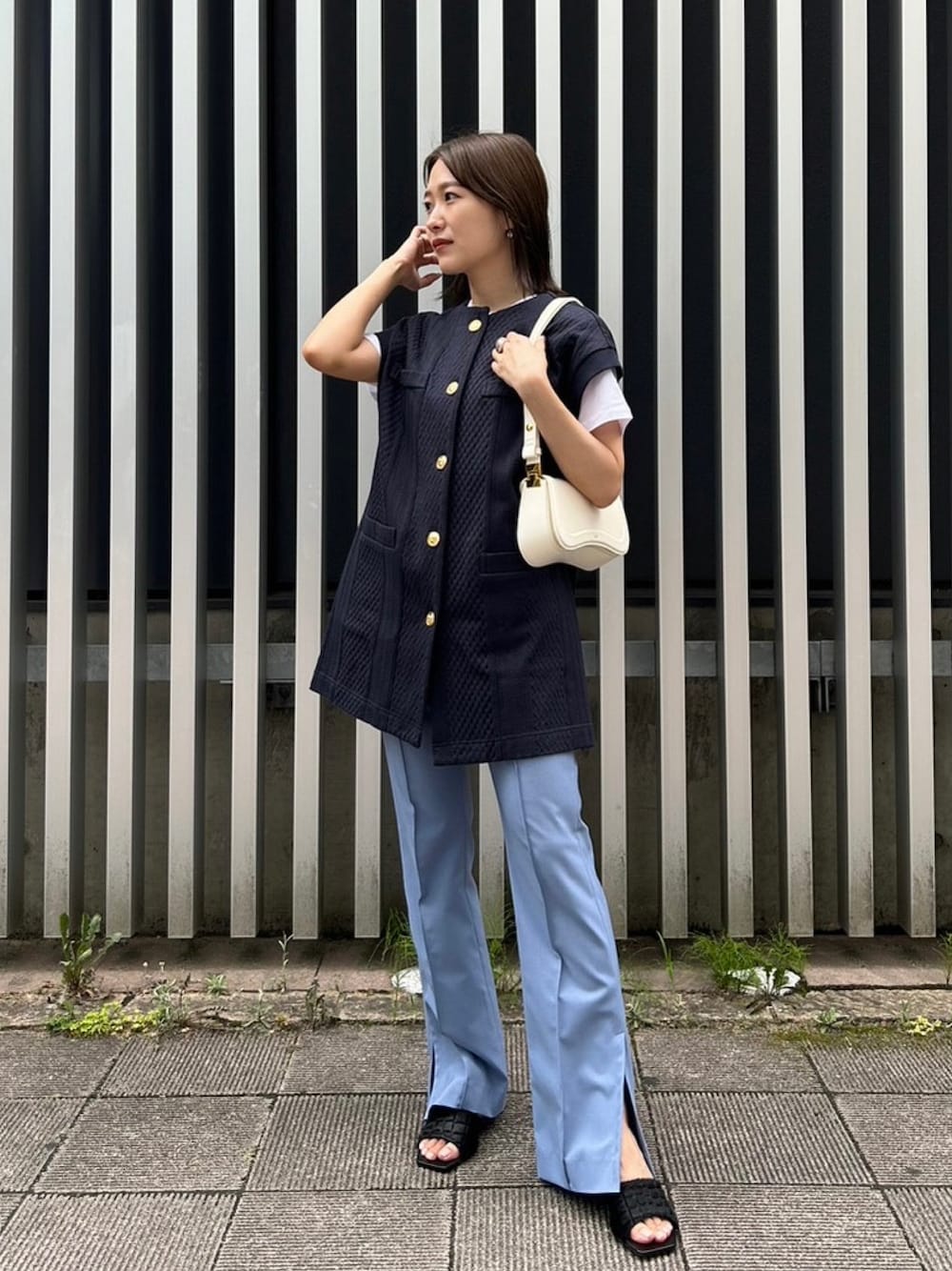 ジレはヒップが隠れ、体型カバーもできる着丈。 大きすぎない程よいサイズ感なので小柄な方も着やすいです。