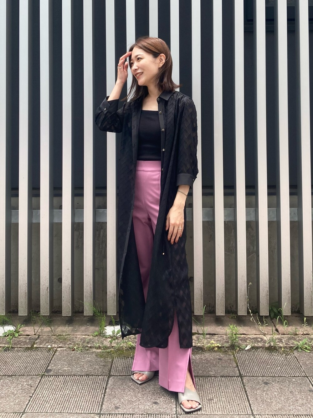 シアーのシャツワンピースは前を開けて羽織としても活躍します。 ロング丈ですが透け感もあるので夏の日除けとしてもオススメです◎