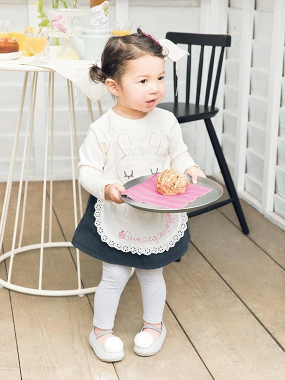 メイド風のかわいいコーデアイテムです。 ・トップスはmimiちゃんにレースのお帽子が かわいいTシャツ。 ・スカートパンツは同じレースのエプロン付 かわいいコーディネートにいかがですか。
