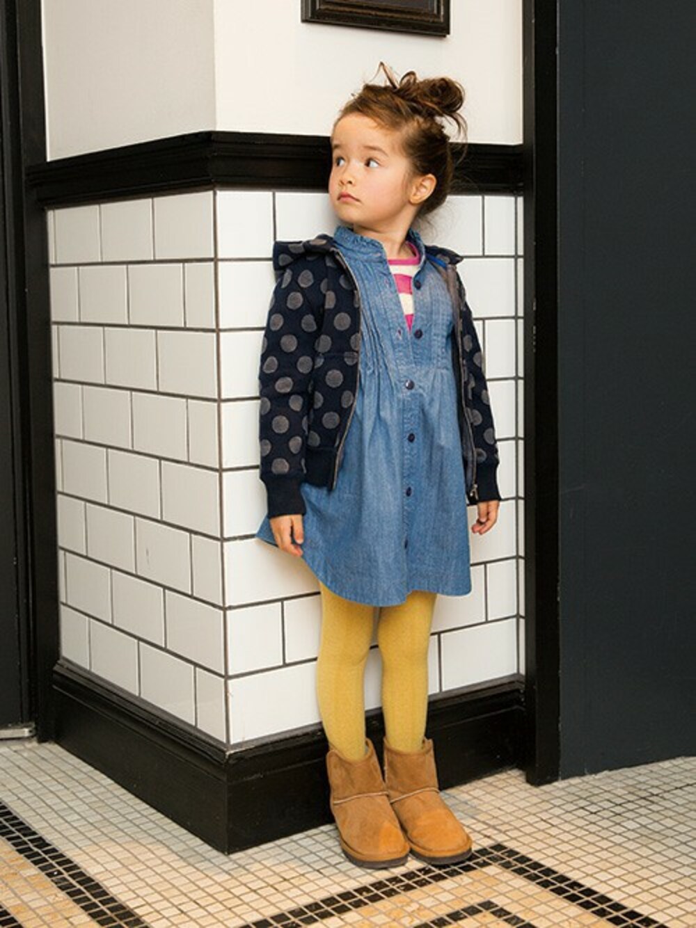 ワンピ、タイツ、ブーツスタイルがいいですね。 秋はドットのシンプルなパーカを羽織って肌寒さ 対策に。 モノトーンな合わせやすいアイテムです。