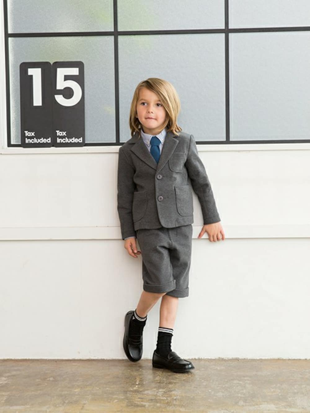 UKスタイルなオケージョンウェアーです。 ジャケット、ハーフパンツはそれぞれ単品で ご購入できますのでコーディネートの幅も 広がります。 シャツはネクタイも取り外し可能なので単品でも 着ていただけます。 ※ネクタイは簡易取り付け使用です。