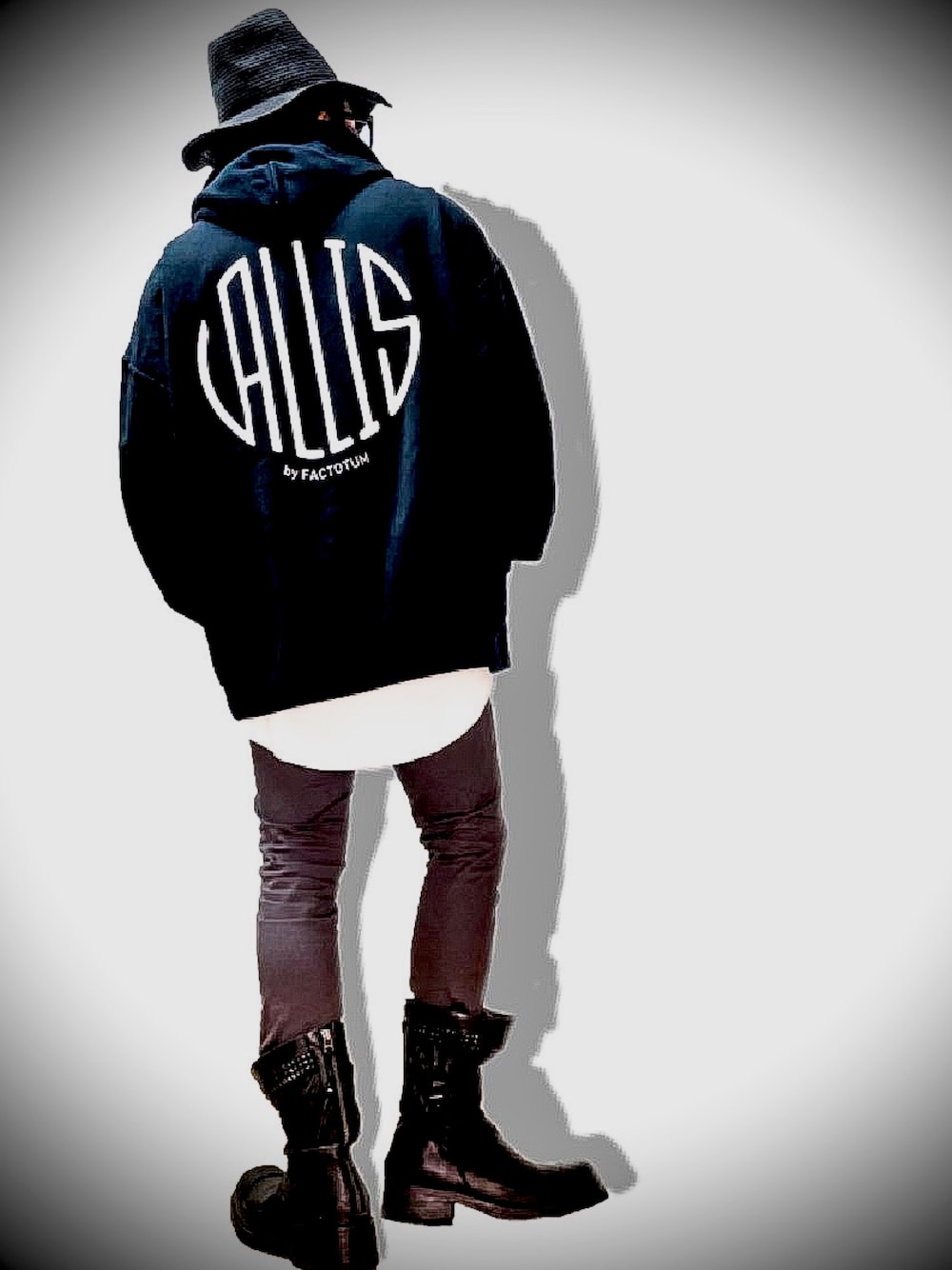 knitrowのパーカー「【VALLIS by FACTOTUM】《別注》サークルロゴバックプリントスウェットプルオーバーパーカー」を使ったコーディネート