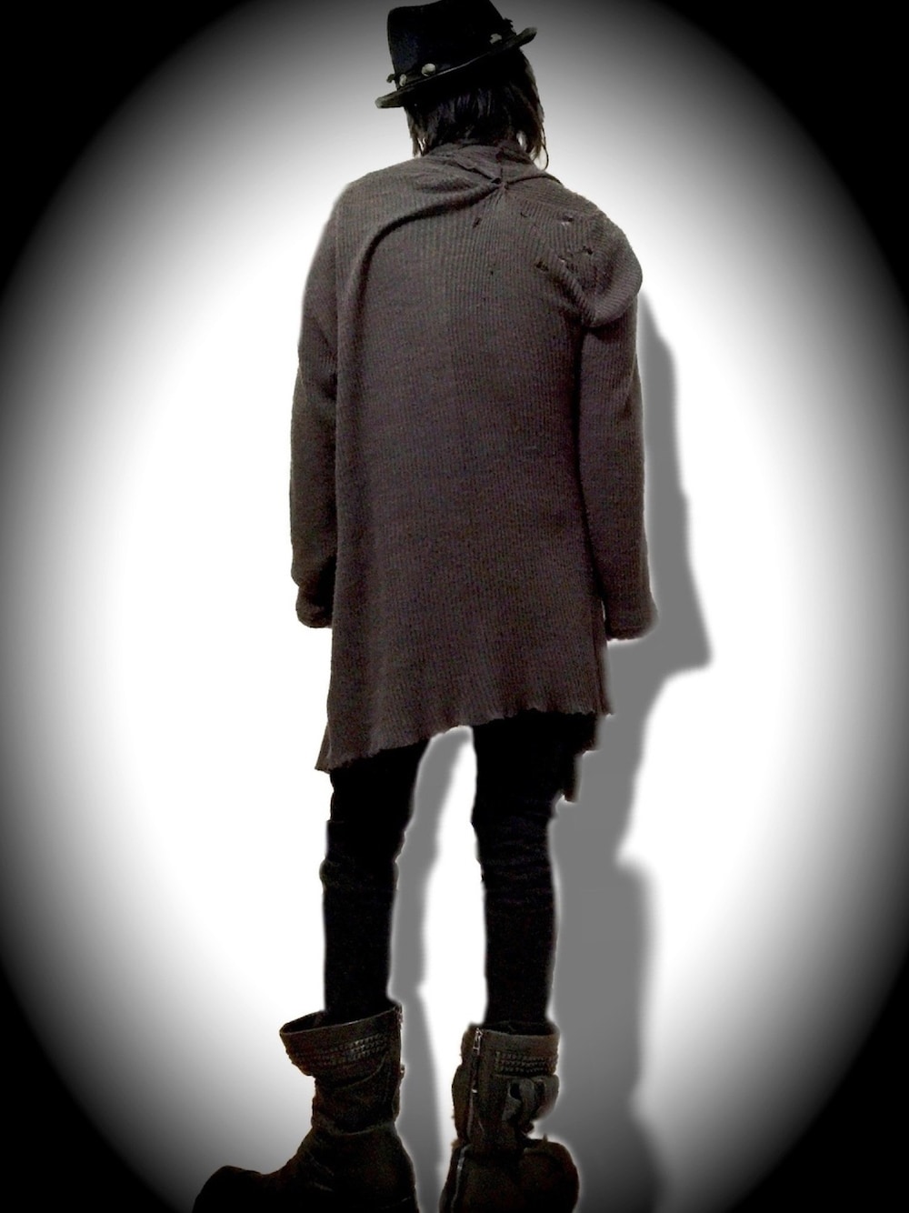 オベリスクの変形ダメージカーディガン 背中が変わってますよね☺️縫い付けて デザインした感じになっていてシンプルながらインパクトあります🤔
