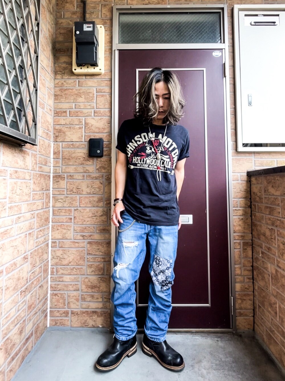 今回から玄関前で🤣最近はアメカジばかり バイカーファッションとか多いです☺️
