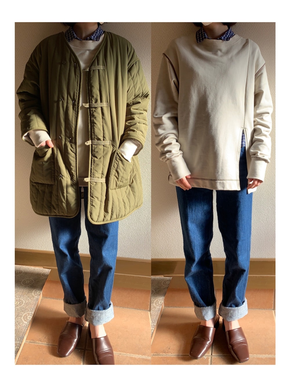 ハルのブルゾン「リバーシブル縦キルトショートコート(キルティングアウター、チャイナジャケット、フリースジャケット)」を使ったコーディネート