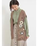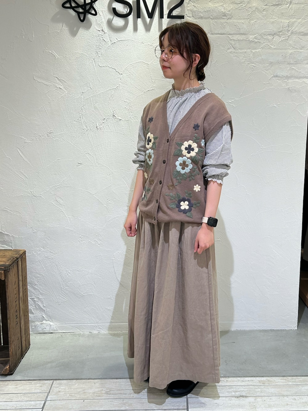 かなみのベスト「花柄刺繍ニットベスト」を使ったコーディネート