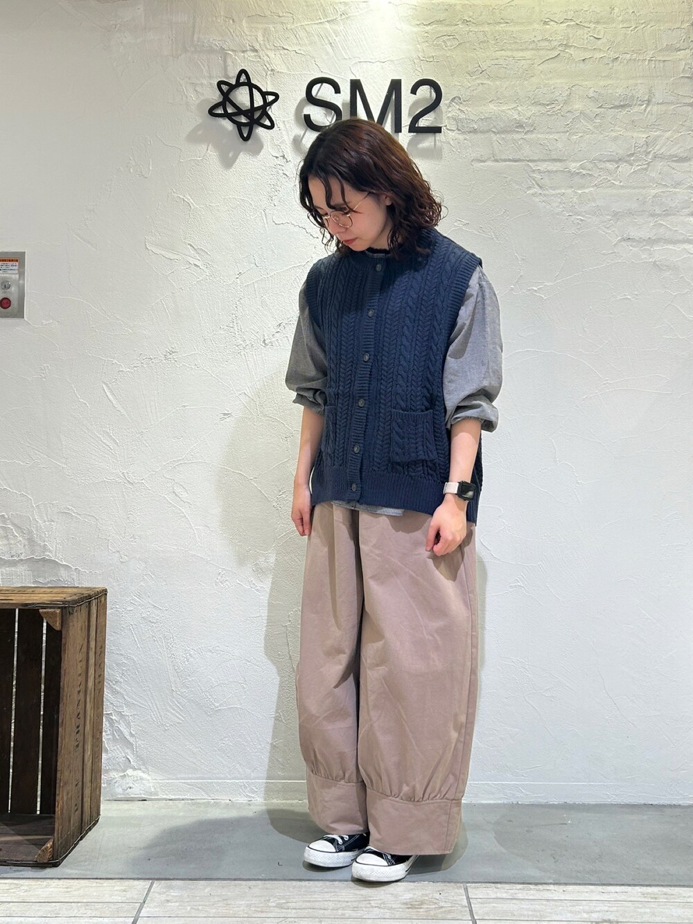 ケーブル編みのニットベストは、ほっくり可愛いナチュラルな印象に。 ちょこっと付いてるポケットがお気に入りです☺︎ ワイドパンツと合わせて、よりナチュラルなコーデにしてみました!