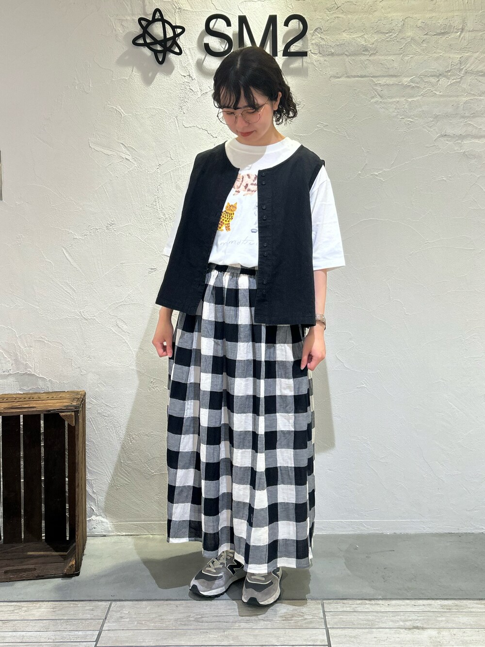 松尾ミユキさんコラボのTシャツと、 リネンベストでカジュアルガーリーコーデ。 Tシャツは裾にタックが入っており、1枚で着てもふわっと可愛いシルエットです♡