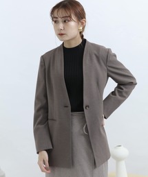 ノーカラージャケット (ブラウン系)ノーカラージャケット