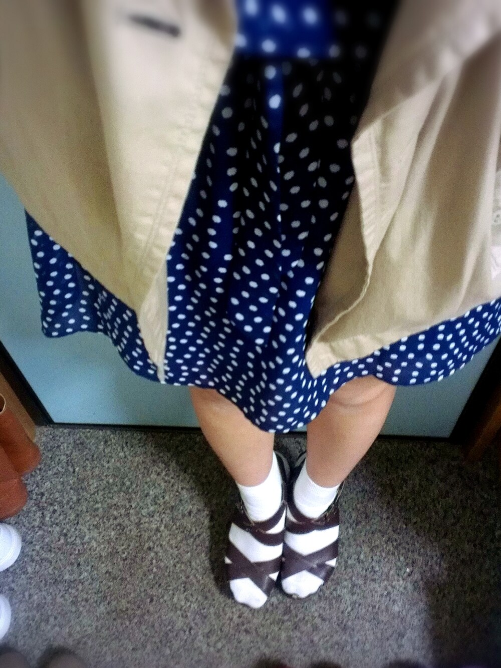 コート:green parks ワンピース:ハワイで買ったもの 靴下:tutuanna サンダル:C's