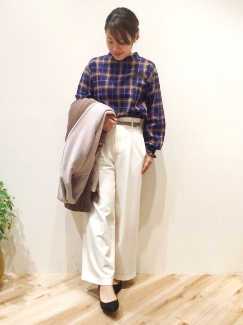 いいね、お気に入り、フォロー、そしてご覧いただきありがとうございます(⍢) 本日は、柄が可愛いチェックブラウスを大人カッコよく合わせてみました😊⭐️