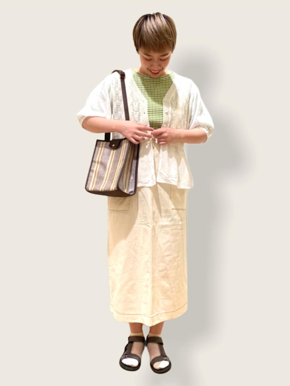 こちらのブラウス、羽織としても万能です! シンプルなコーディネートにプラスでどこかにカラーや柄物を持ってくるとより夏らしくなります🌞🌴🌺✨
