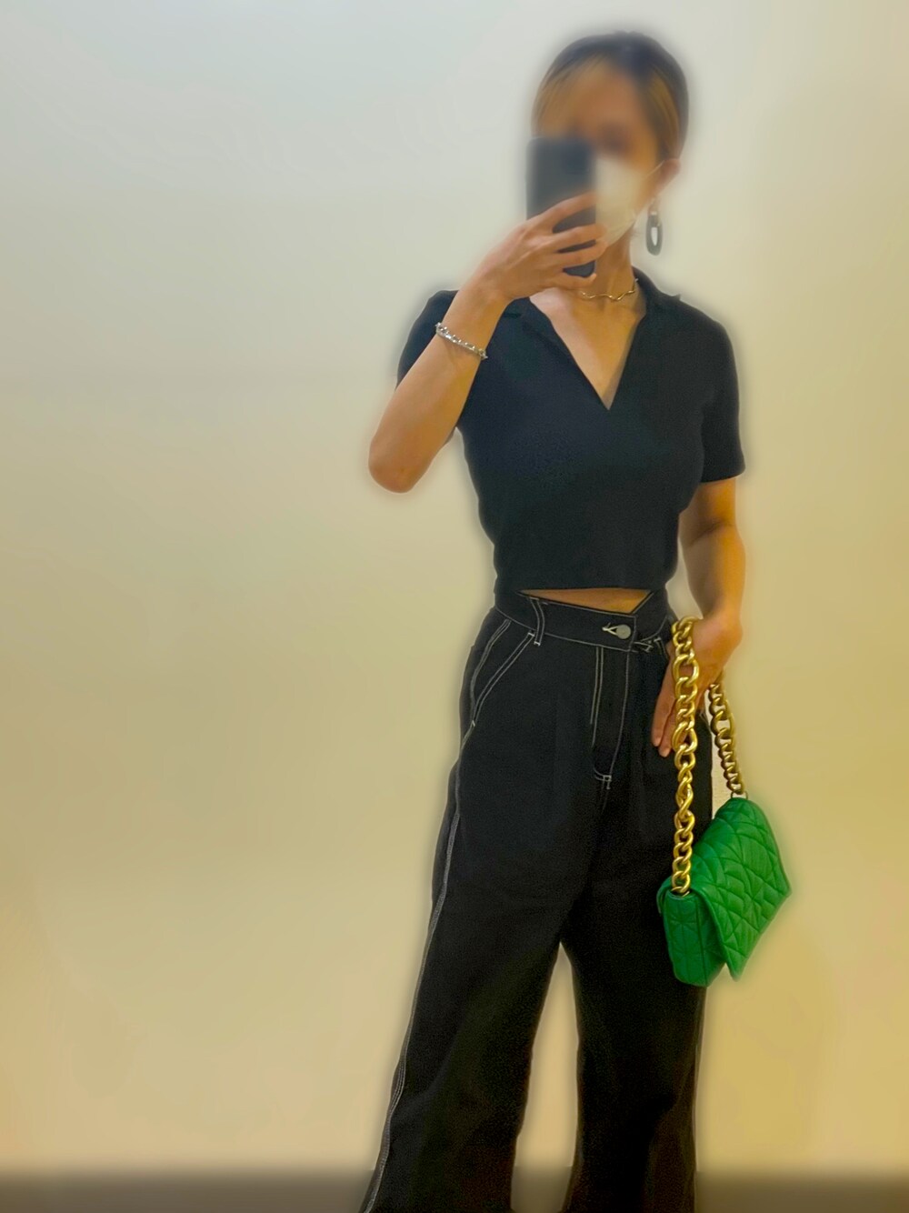 . ブラックコーデ🦨 ZARAの緑のバックが可愛すぎて買って大正解でした( ◜ᴗ◝)