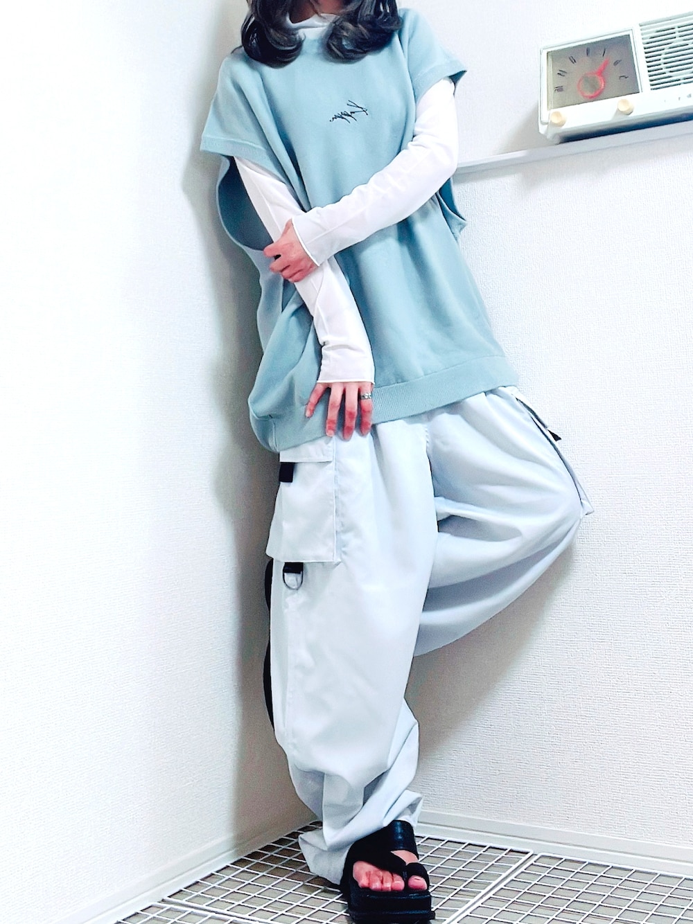 ゆるベストコーデ いいね、お気に入り、フォルダイン、 ありがとうございます♪ すごく嬉しいです✨ 全体的にオーバーサイズなゆるコーデ! ラフ感がすき! ⚪️インナー ANAP ⚪️ベスト ZOZOTOWN⇨検索🔎Kappa カッパ 別注 ロゴ刺繍 オーバーサイズ クルー リンキング ニットベスト ⚪️ボトムス ZOZOTOWN⇨検索🔎act'm ⚫️シューズ ZOZOTOWN⇨検索🔎PAGE BOY マシュマロトングサンダル ⭐️🌙