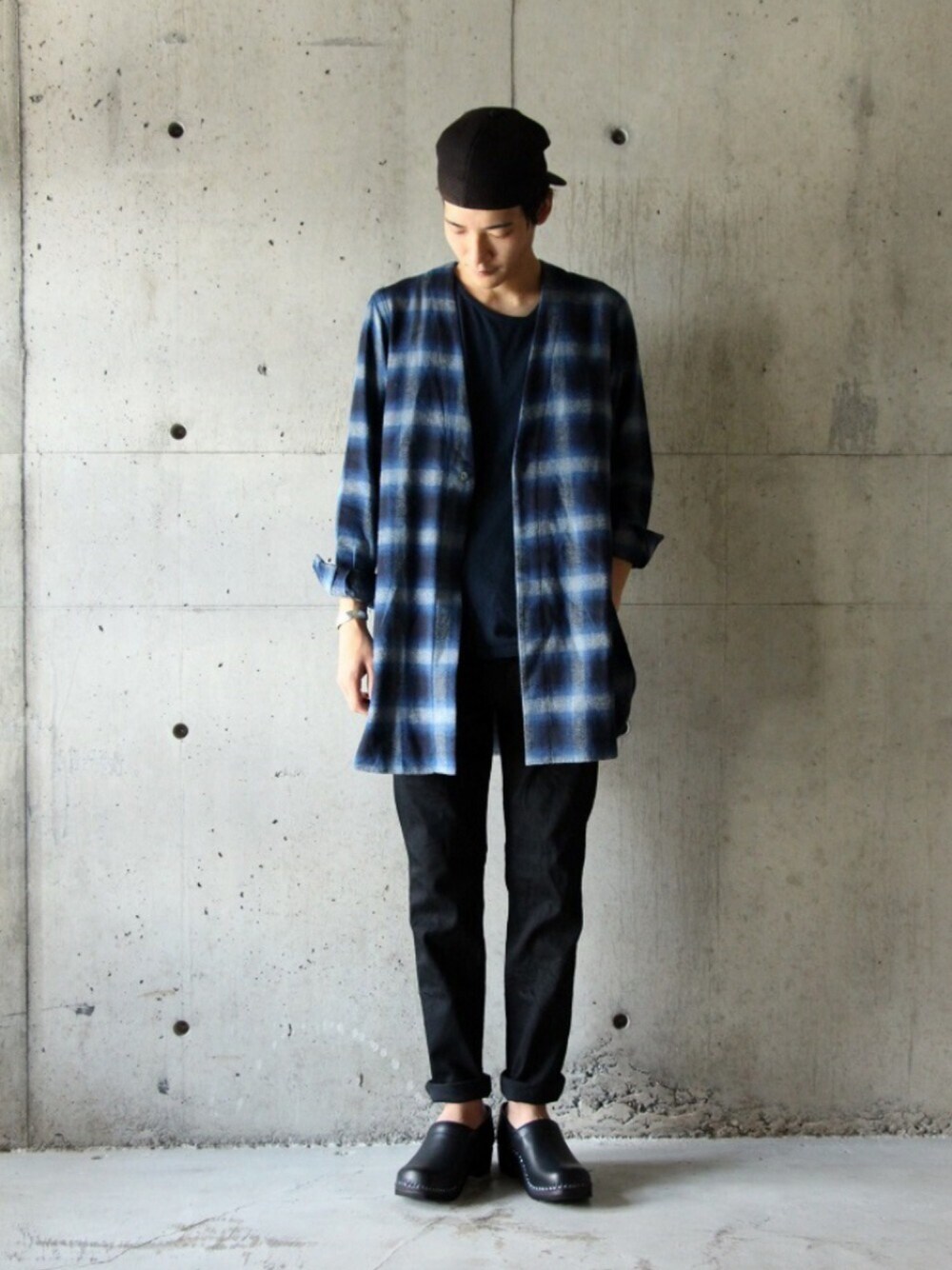 16AW立ち上がりから好評のneedlesの1B C/D shirtsでのコーディネート。青のオンブレがカッコいいです◎