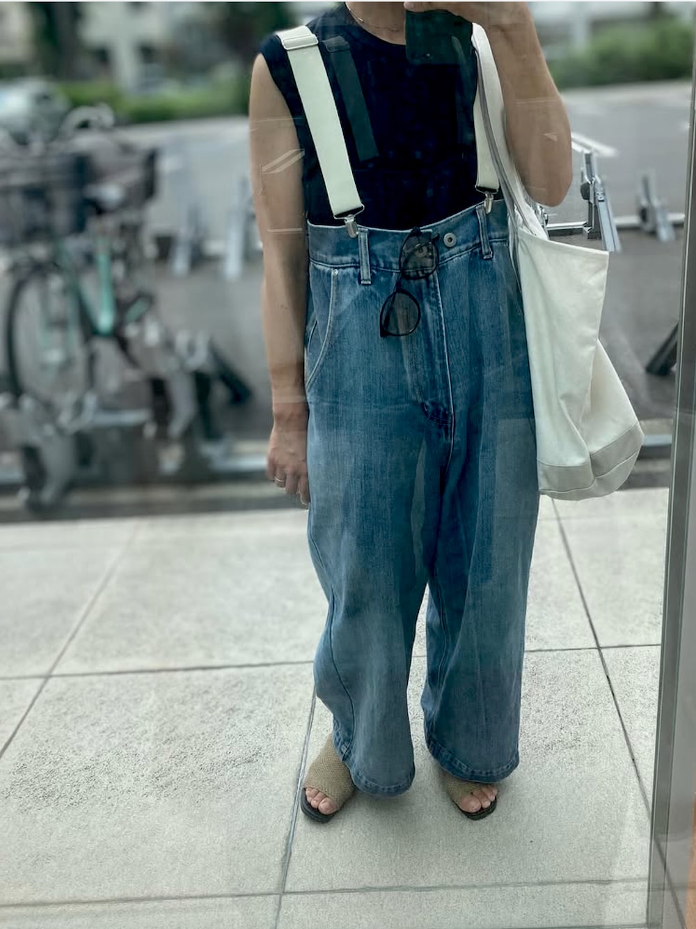 低身長さんだと子供っぽくなりがちなデニムサロペットもこれなら⚪︎ トップスはコンパクトにノースリーブで 愛してやまないヘインズタンクトップ。 インナーが見えにくい、でもタイトすぎない絶妙なサイズ感でコレクション中
