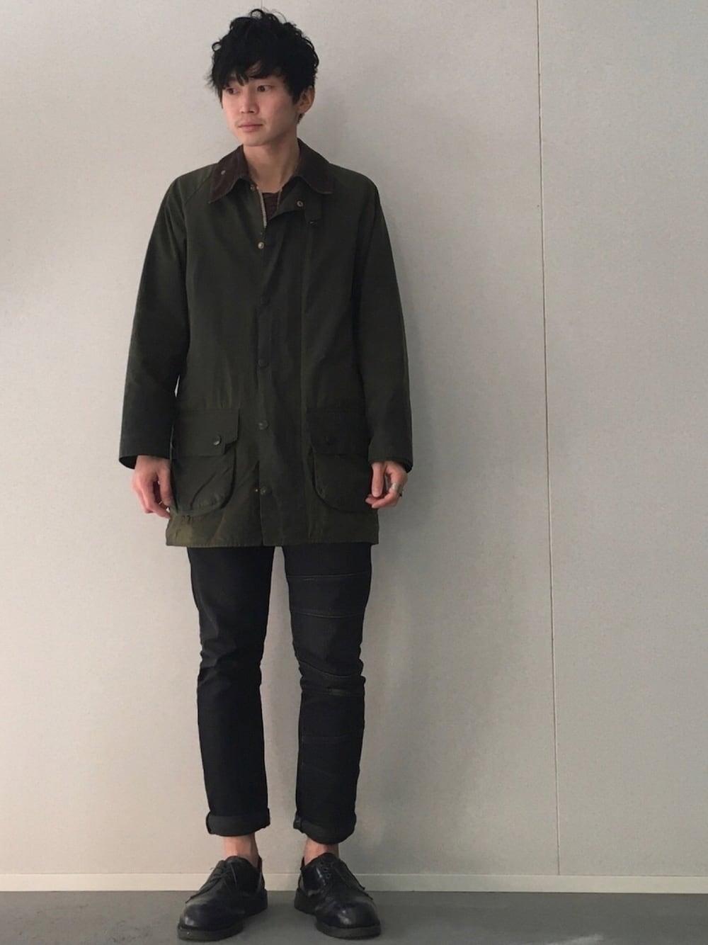 outer: Barbour pants: shareef shoes: Dr.Martens バブアーを黒スキニー、マーチンで合わせる