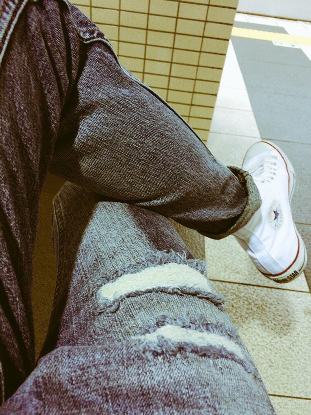 足元だけ(*^^*) ZARAパン、テーパードが強くて好きな形! ロールアップしてハイカットとの相性抜群!