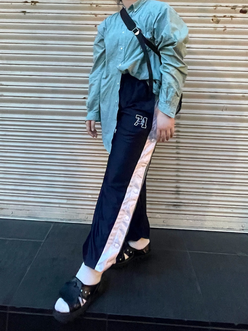 シャツにジャージにベンサンと。 違和感が楽しい☀️
