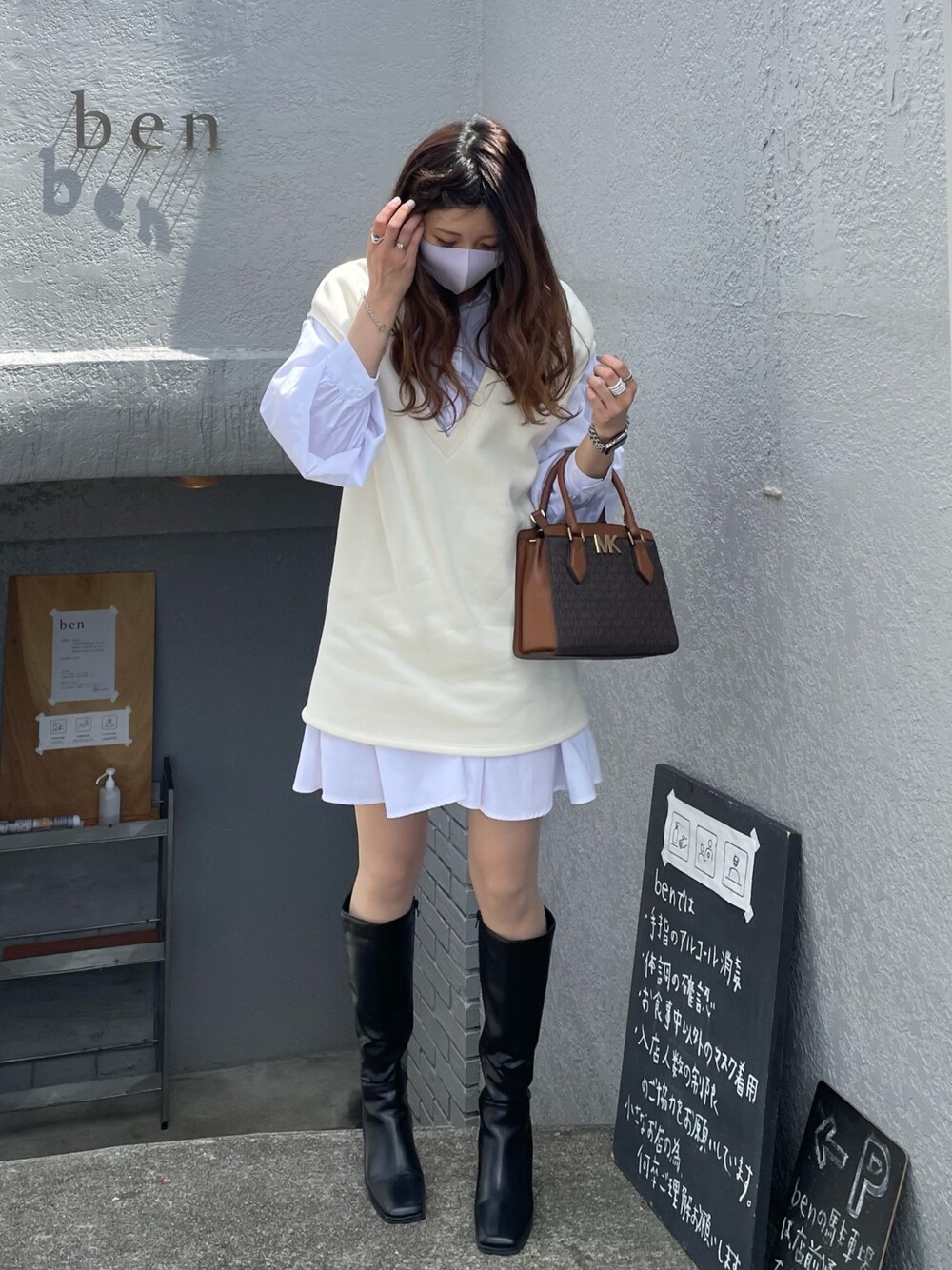 韓国サイトで昔買ったシャツワンピースに大きめベスト🤍