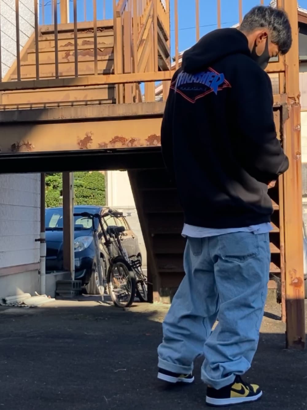 Kokiのパーカー「【ムラサキスポーツ別注】THRASHER/スラッシャー ビッグシルエット バックプリントパーカー TH8522S DIAMOND」を使ったコーディネート