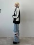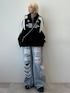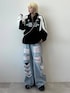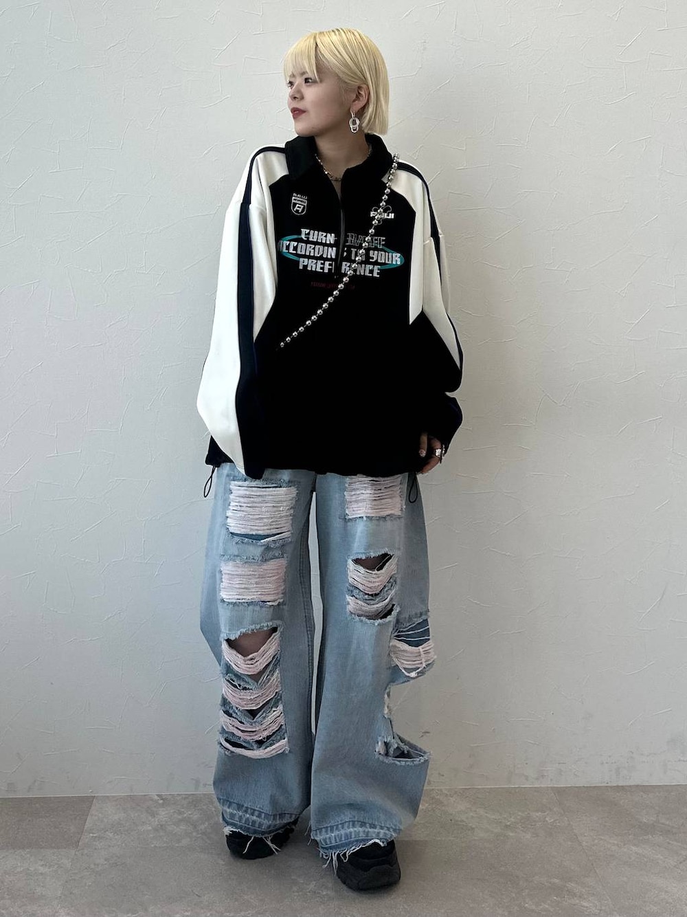 【Anui】 新作のゲームポロシャツ着用🤍💚 トレンドのゲームTシャツデザインが可愛い‼︎ 裾はドロスト仕様になっているのでシルエット を変化が可能です🙌✨ ボトムス モンスターダメージデニム👾 やぶれ部分にはカラーが入っていて インパクトあるデザインです✨ R2(160cm)のサイズ感のゆったり差好き♡ 厚底あまり履かない人はG2がオススメです‼︎