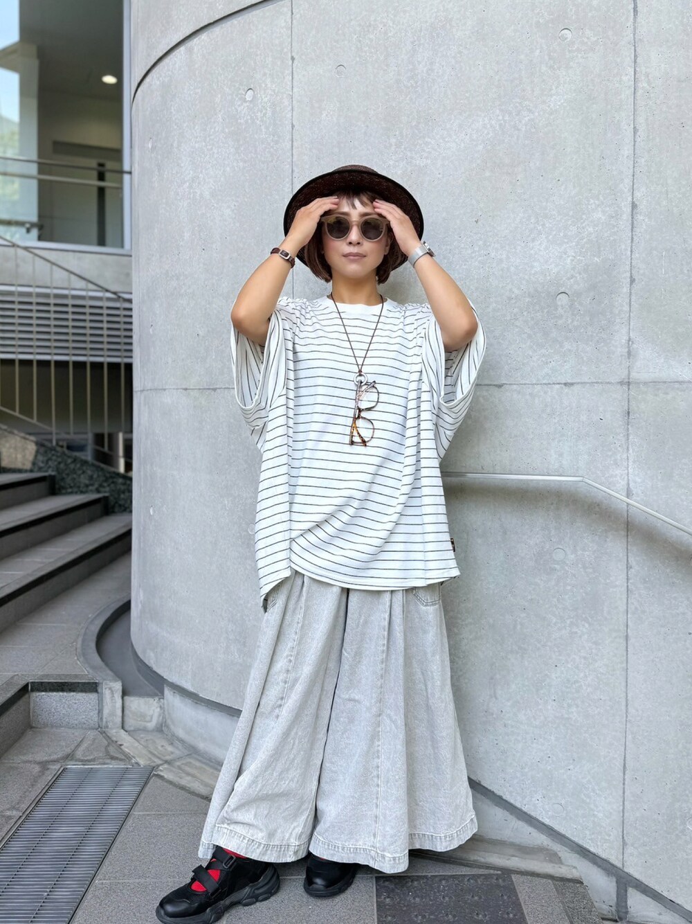 ユニセックスボーダーtee🖐️ カジュアルになりすぎず ボーダーteeのダボ感を 可愛くきこなせるように 麦わら帽子をアイテムに してみました🫶☀️🫶