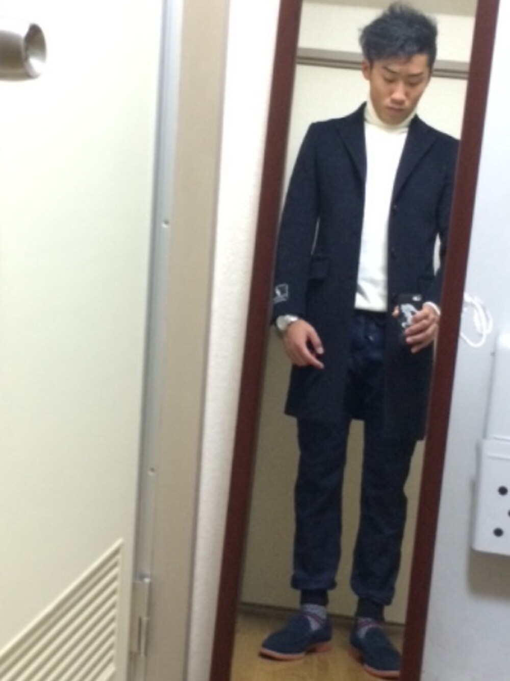 にしかわこーのチェスターコート「UR PONTE TORTO CHESTER COAT」を使ったコーディネート