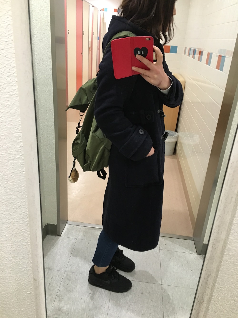 手抜きコーデ スーパーのトイレから失礼します。 ロング丈のダッフルがお気に入りです。 エアーマックス歩きやすいです。 このリュックも軽くてお気に入り♡ コートの中はデニムとボーダーワンピで 本当に手抜きコーデで載せれないww これにグレーのスヌード巻き巻きしました。 年越す前に美容院行けて満足♡ 2015年久しぶりの更新が最後の更新って… 来年はもっと更新したいです!!!