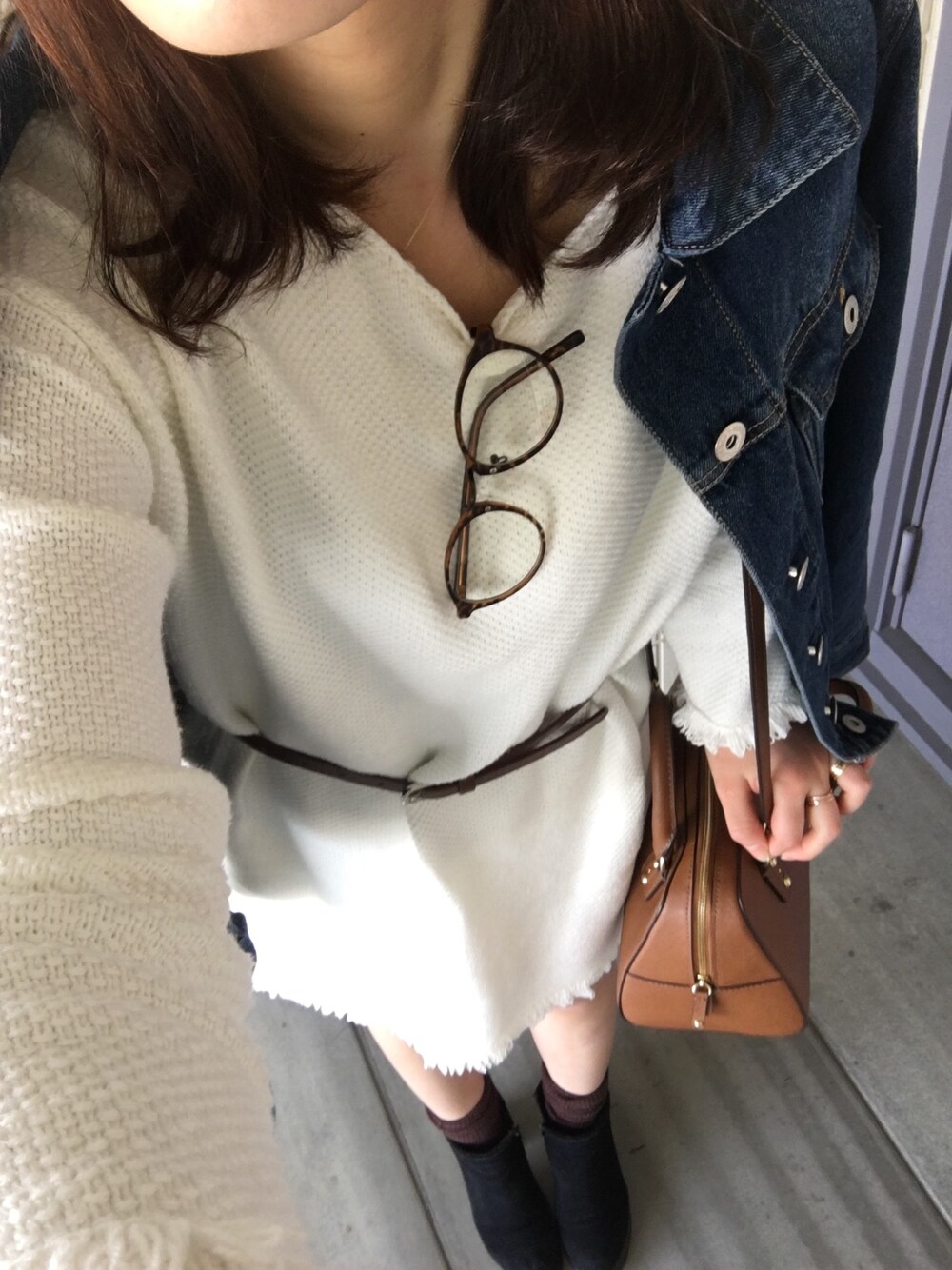 このワンピースとってもおかわ♡ まんまでもいいし ウエストにベルトしてもおかわ♡ バックは自分へのご褒美で買ったものです アウトレットで半額以下で買えました♡笑