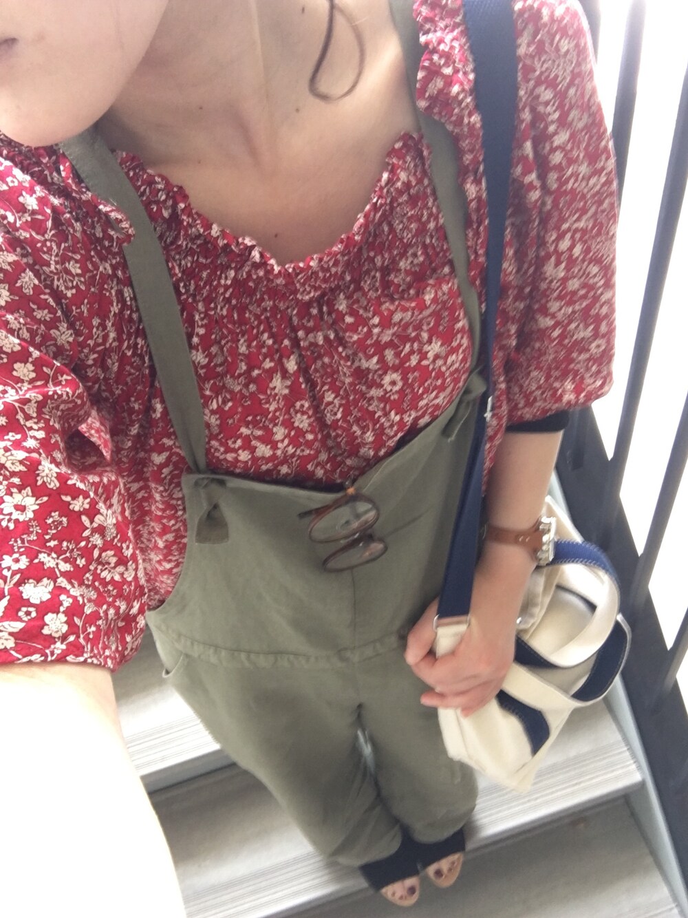 このサロペおかわすぎpq♡ 髪は手ぐしでまとめて クルッとしただけの 無造作お団子ヘアー 簡単楽チンヘアー👍