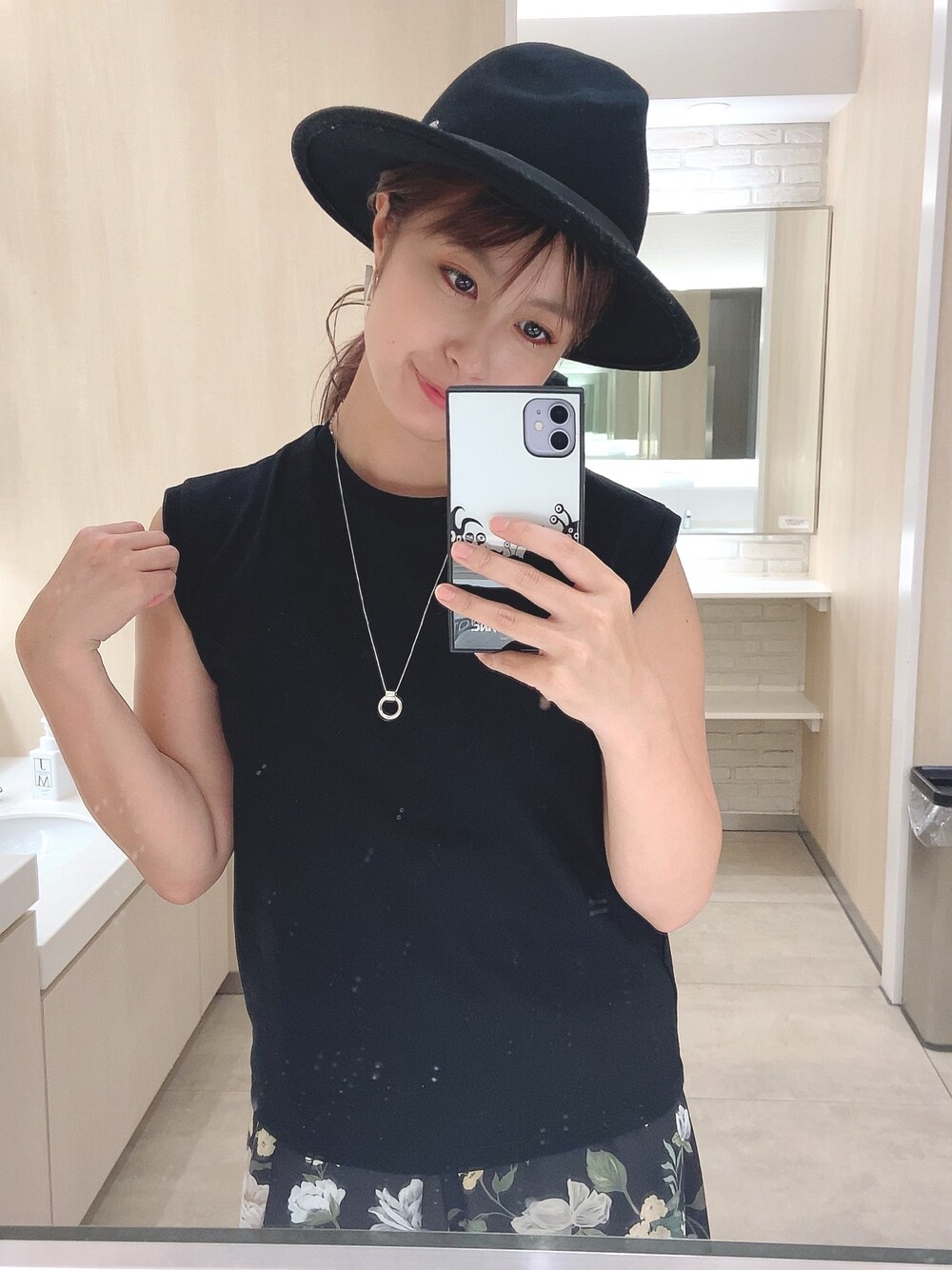 真夏のブラックコーデ🥺✨ 久しぶりにオールブラックにした⭐️風がなかったから久しぶりにハット被れた〜暑いけど日焼けにはもってこいなヤツ⭕️